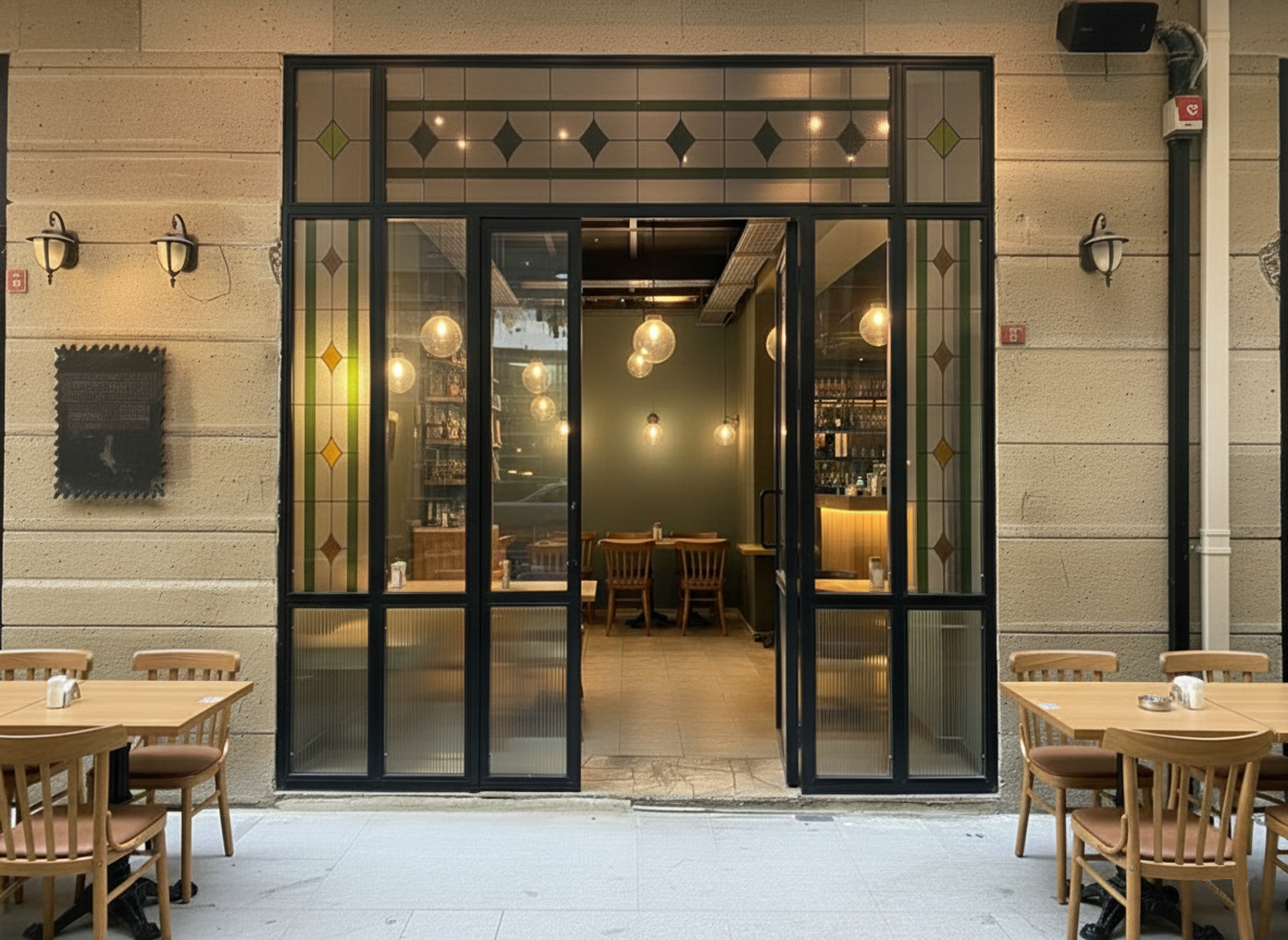 Elektrostatik boyalı metal kutu profillerden oluşan ana kasa; dijital baskılı, desenli buzlu camlar ve nervürlü camlar ile birleştirilmiştir.